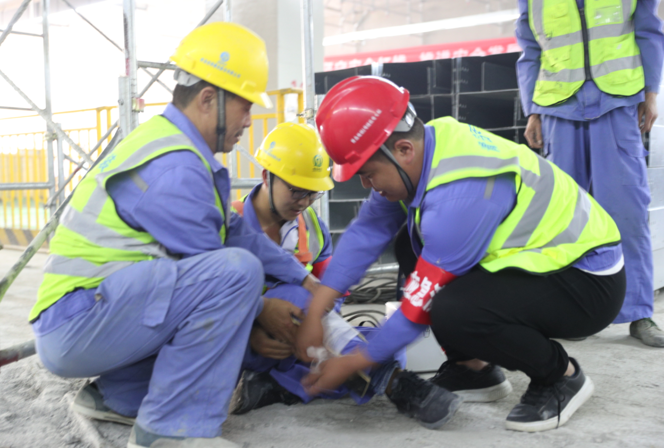下午2點整,姜曉紅經(jīng)理講解了應(yīng)急演練的積極意義及具體方案,公司地鐵項目部安全總監(jiān)王正強講解滅火器材使用方法和消防疏散注意事項及安全帶的正確使用方法,并現(xiàn)場隨機邀請了兩名工人進(jìn)行滅火器的使用演練。2點20分,綜合應(yīng)急救援演練活動總指揮劉洋同志宣布演練正式開始,演練背景:1、由于夏季多雨,車站發(fā)生雨水倒灌;2、施工現(xiàn)場電焊作業(yè)的焊渣引燃可燃材料導(dǎo)致火災(zāi)。隨即展開防汛、消防救援活動,經(jīng)過水泵排水、砂袋擋水、自救互救、滅后器滅后、消防水滅火、人員疏散逃生、火勢得到控制,險情被成功化解。演練主要展現(xiàn)現(xiàn)場應(yīng)急響應(yīng)、防汛、滅火、人員疏散逃生、傷員急救轉(zhuǎn)移五個環(huán)節(jié),分應(yīng)急響應(yīng)、信息上報、防汛、滅火器滅火、消防水滅火、傷員救治與轉(zhuǎn)移、人員疏散七個場景演練,鍛煉搶險救援隊伍,提高先期處置能力。