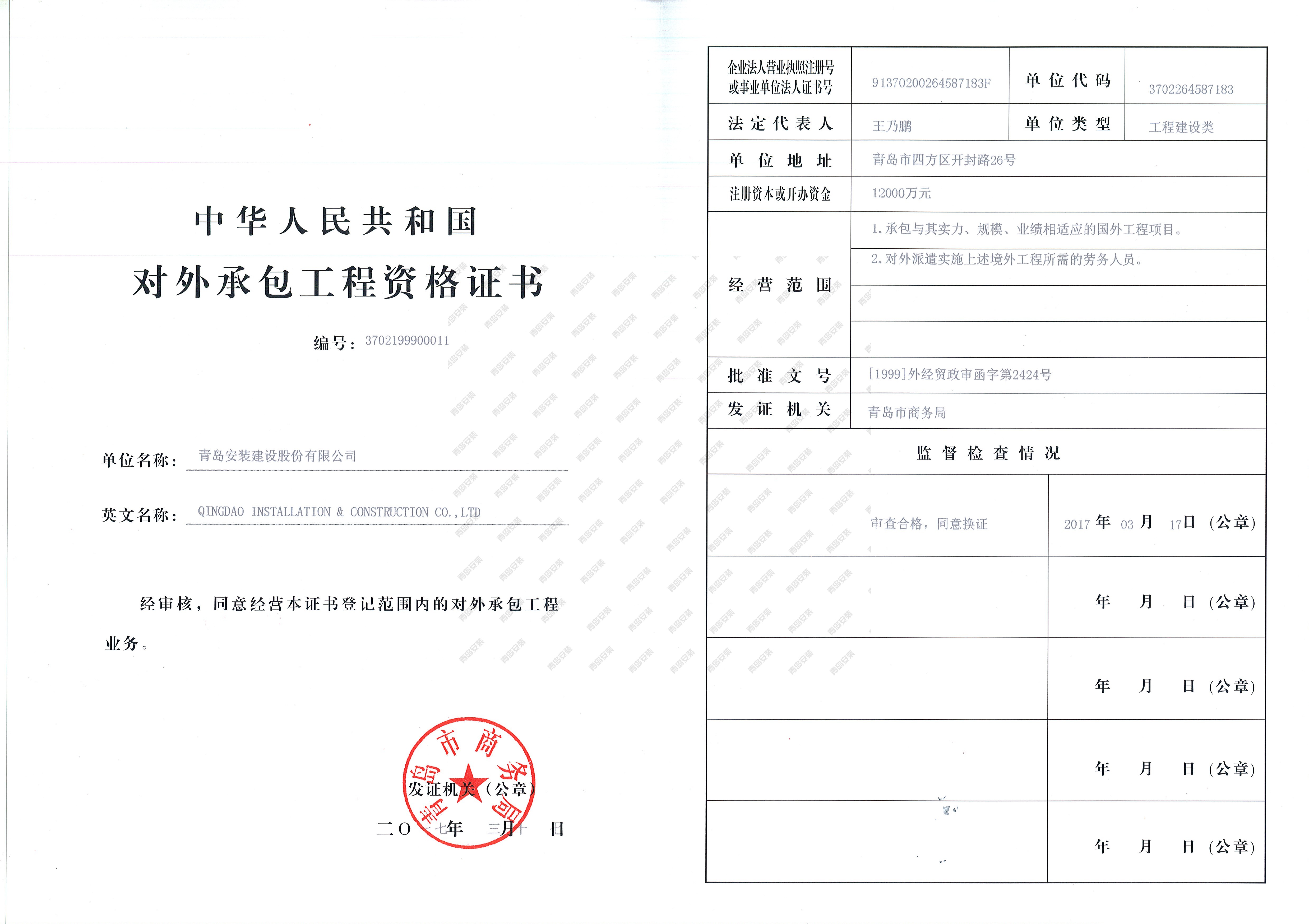 對外承包工程資格證書